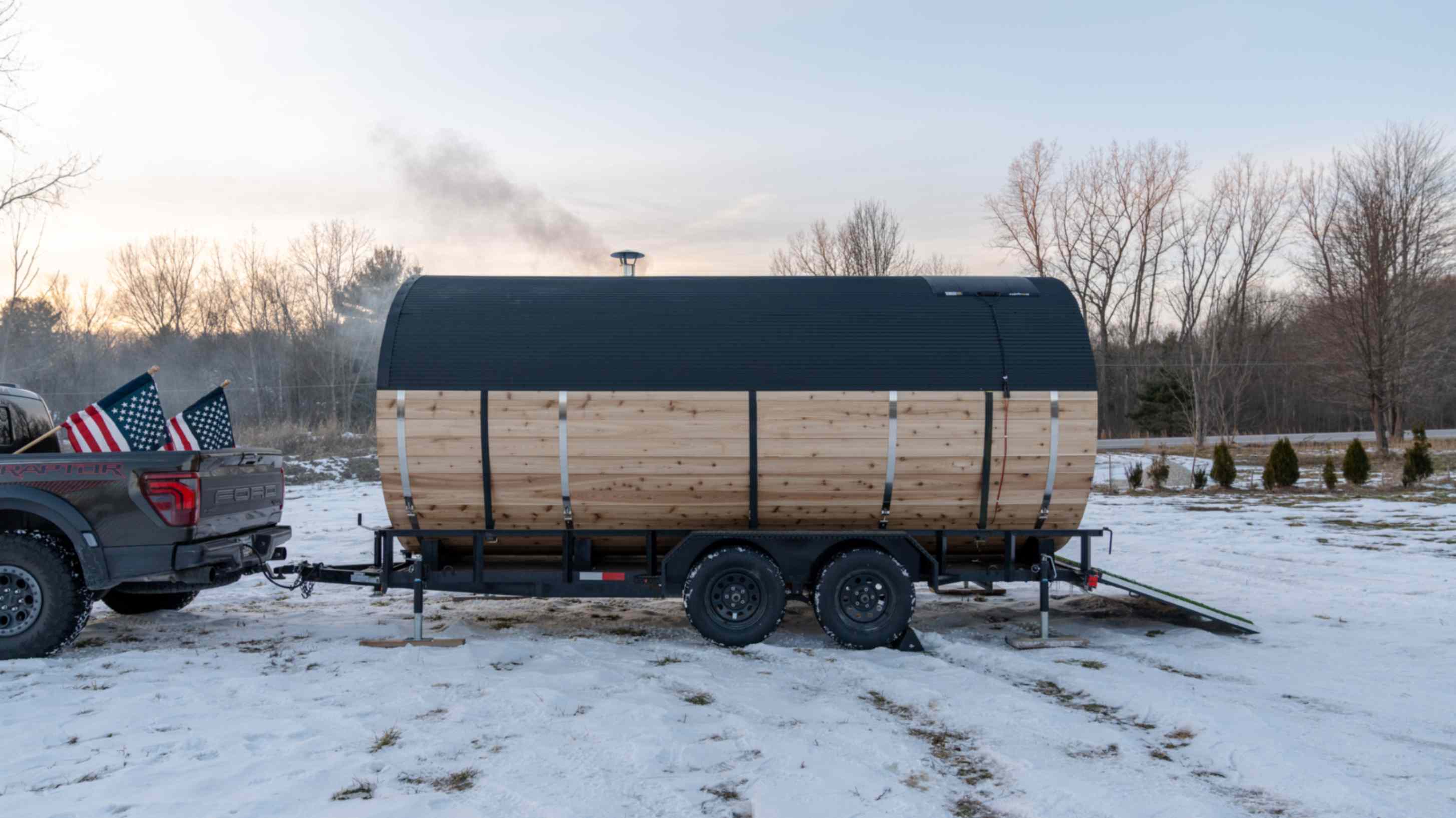 At The Mobile Sauna Pod, we bring the ultimate sauna experience to Northeast Ohio with our Barrel Sauna with Porch, which comfortably accommodates up to 9 people. Our 16-foot sauna barrel includes a 4-foot changing room, offering a relaxing and rejuvenating environment for friends, family, or wellness groups. We provide convenient delivery services throughout Northeast Ohio, ensuring that everyone can enjoy the benefits of sauna therapy.